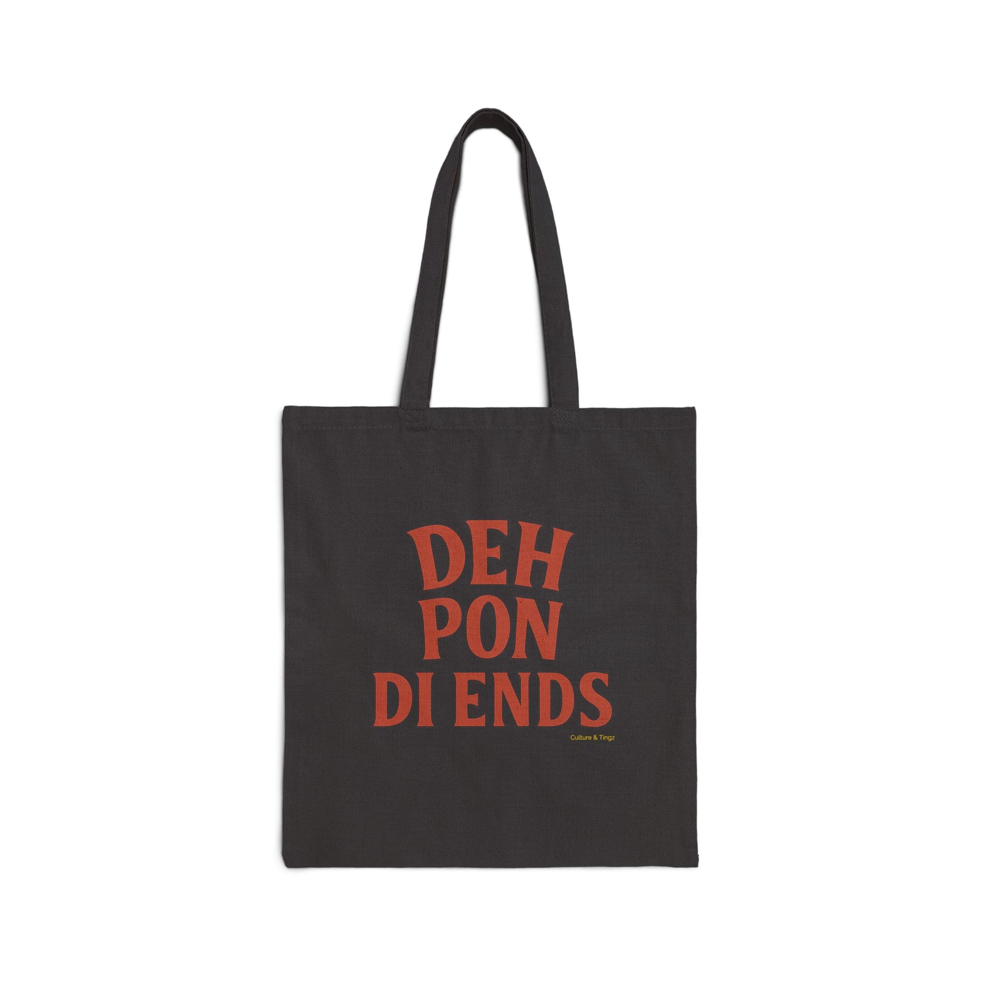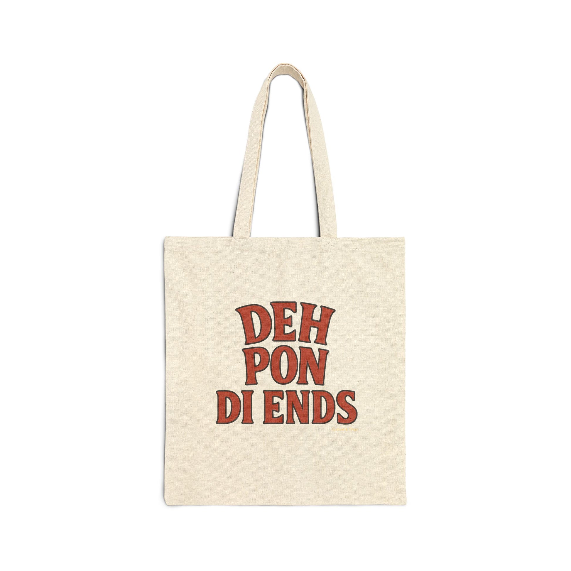 Carry culture with you everywhere with the “Deh Pon Di Ends” Cotton Canvas Tote Bag. In Jamaican Patois, this phrase means posted up on the block — a bold nod to presence, roots, and community. Featuring distressed red lettering with a black outline, this tote blends everyday function with street-corner pride.