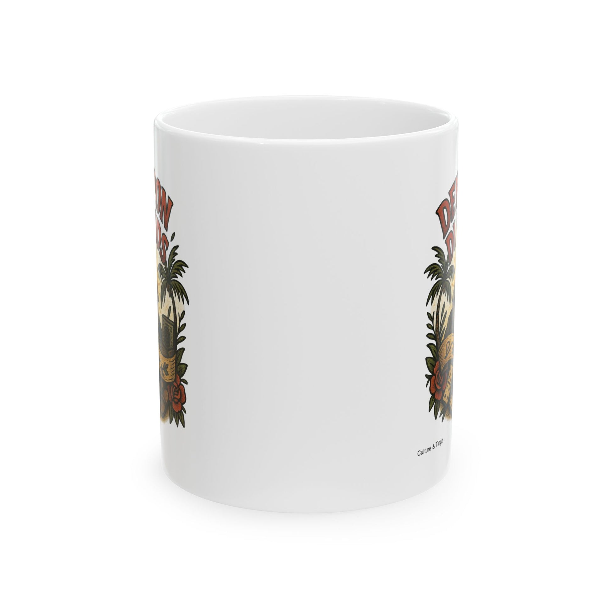 Branding Notice.Ā For authenticity and brand recall, our discreetĀ Culture & Tingz website nameĀ is placed in the lower-left corner of each mug design. This does not interfere with or overpower the artwork.