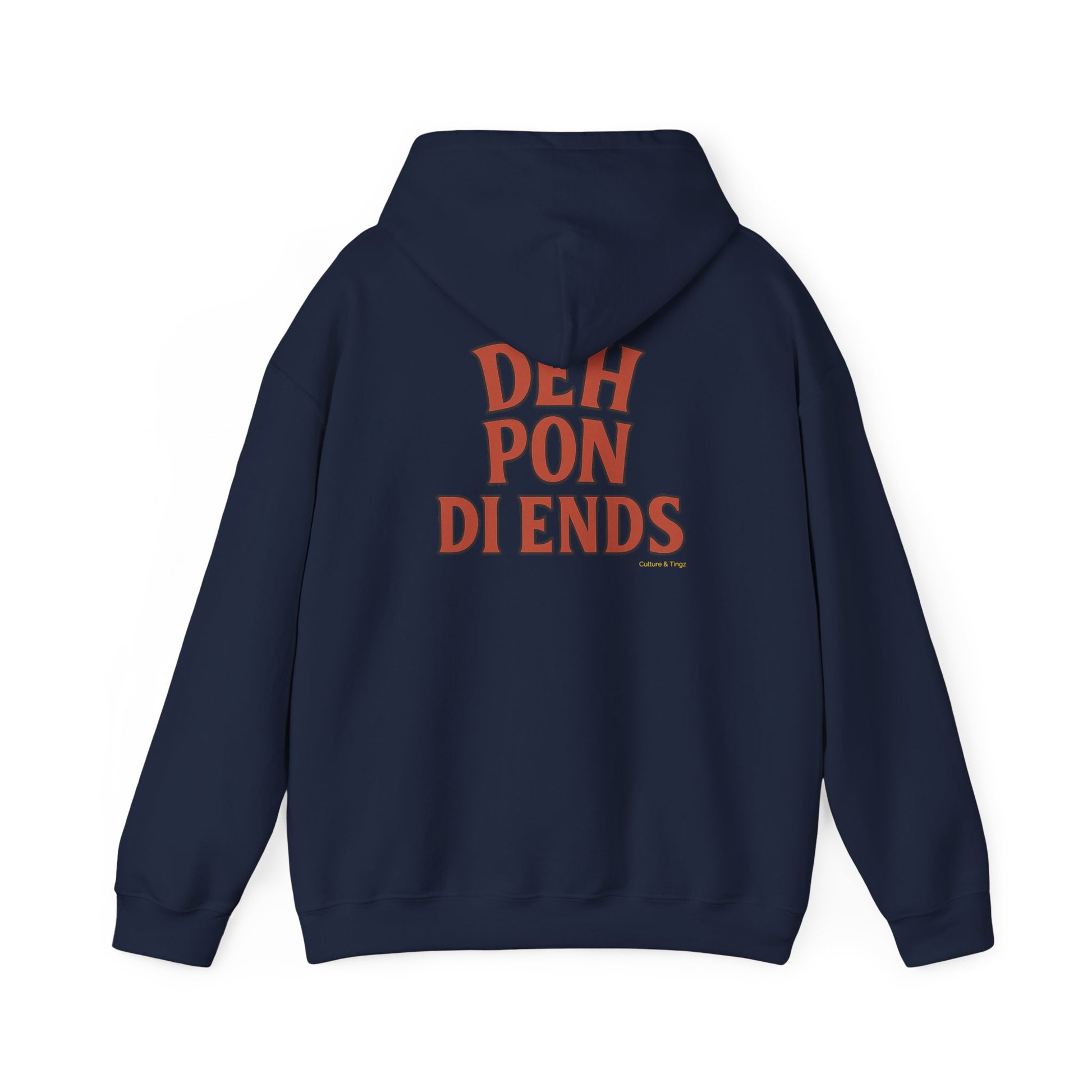 Wrap yourself in culture with the “Deh Pon Di Ends” Hoodie, inspired by the Jamaican patios phrase meaning posted up, rooted in the block. It’s a symbol of belonging, street-corner stories, and cultural pride.