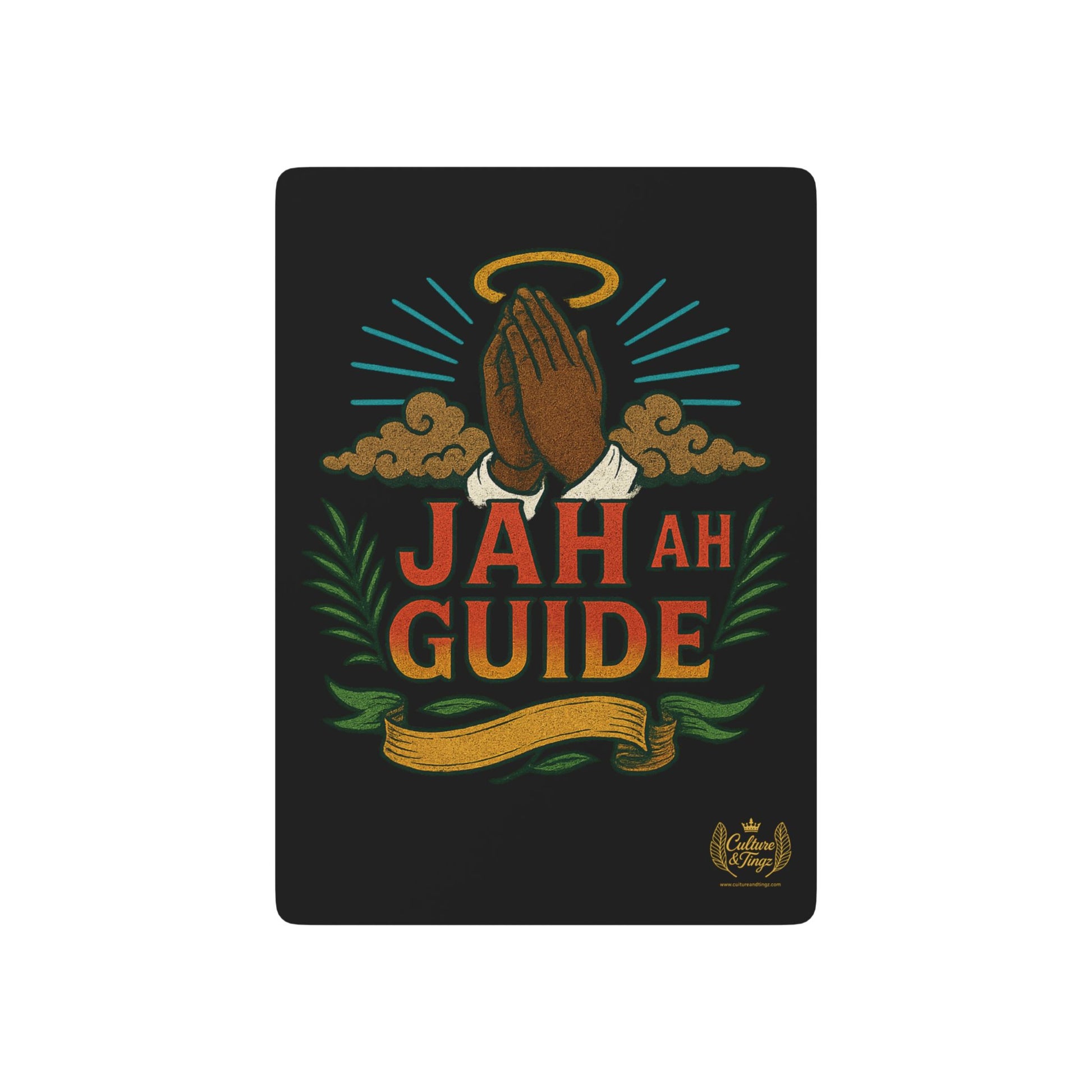Bring faith and culture to your game nights with the “Jah Ah Guide” Poker Playing Cards. Inspired by Caribbean spirituality and resilience, this design serves as a bold reminder that Jah’s guidance is always present — even at the card table.
