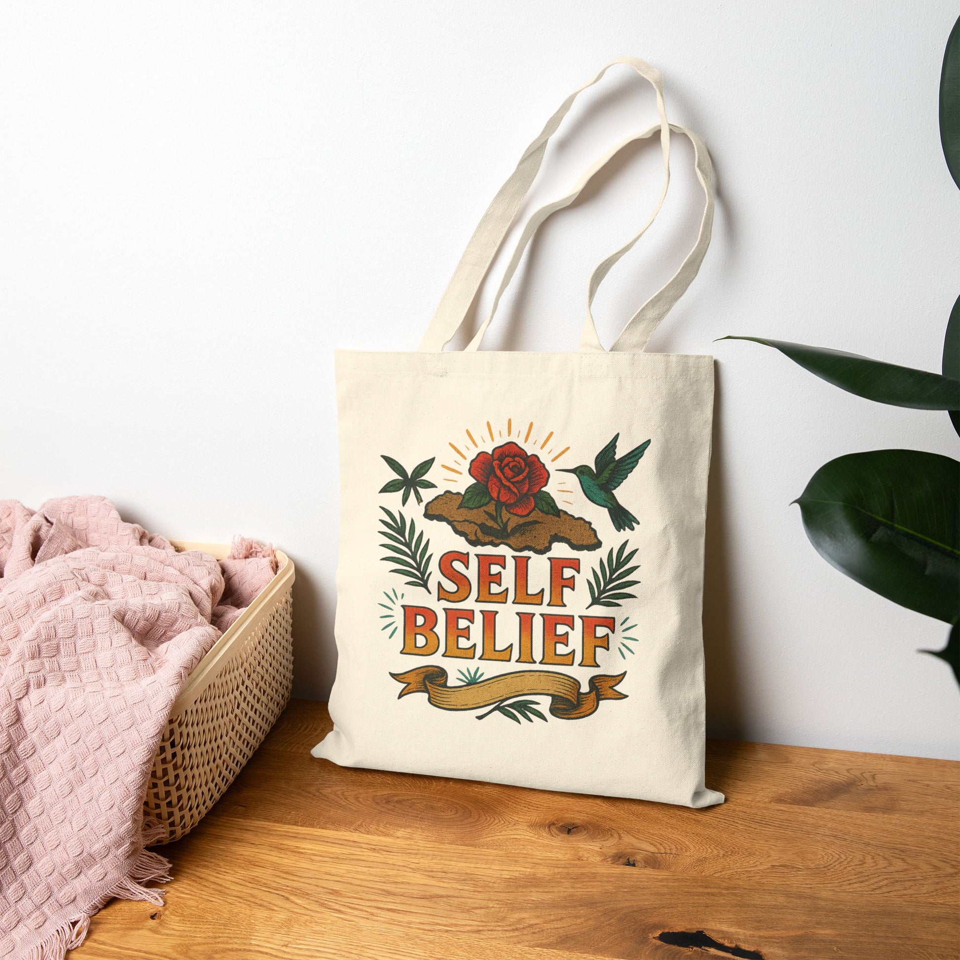 Self Belief - Canvas Tote Bag (Lettering Front, Artwork Back)